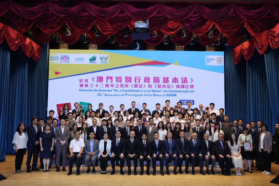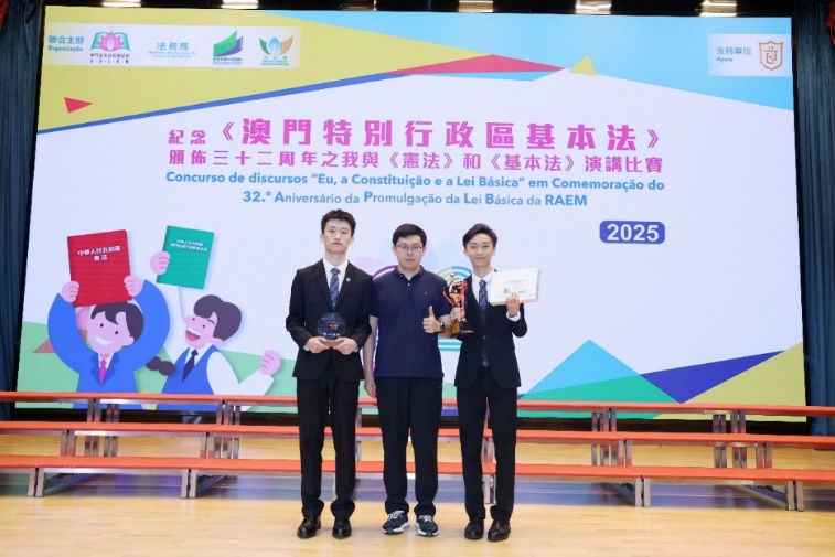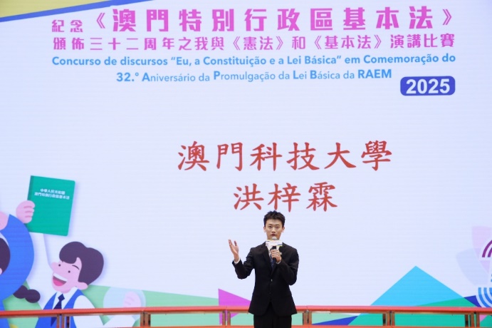 為向青年學生持續推廣《憲法》和《基本法》,透過讓青年學生講述自身與《憲法》和《基本法》的故事,表達《憲法》和《基本法》對其個人、家庭及社會的意義,由澳門基本法推廣協會、法務局、教育及青年發展局和市政署聯合主辦的「紀念《澳門特別行政區基本法》頒佈三十二周年之我與《憲法》和《基本法》演講比賽個人決賽及頒獎禮」於2025年6月6日順利舉行。澳門科技大學藝術團學生黃潤謙和洪梓霖分別獲得季軍及一等獎。