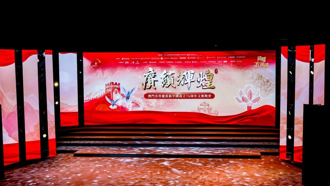 9月20日晚,由中央人民政府駐澳門特別行政區聯絡辦公室宣傳文化部澳門特區行政區政府文化局指導,13家澳門主要社團聯合主辦的「同聲歌祖國:賡續輝煌 —— 澳門各界慶祝新中國成立76周年文藝晚會」在澳門文化中心綜合劇院舉行。澳門特區行政長官岑浩輝,中央駐澳機構負責人、中國文聯負責人及澳門特區政府、社團和學校負責人等近千人出席觀看。相聚星光璀璨的舞台,澳門社會各界以嶄新的姿態,為祖國、為澳門獻上最真摯的祝福。