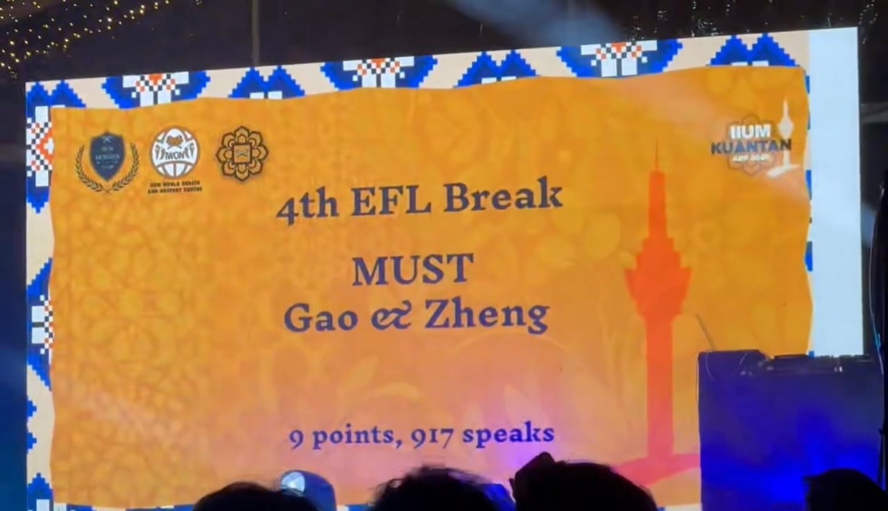 澳門科技大學辯論隊英語組派出高德驊、申倍伊、鄭姝婷、周楊四位同學參加比賽。經過6輪的激烈角逐,最終高德驊和鄭姝婷以第四名的好成績成功晉級EFL組(英語非母語組別)半決賽,成功刷新了澳門科技大學在ABP中的最好成績!
