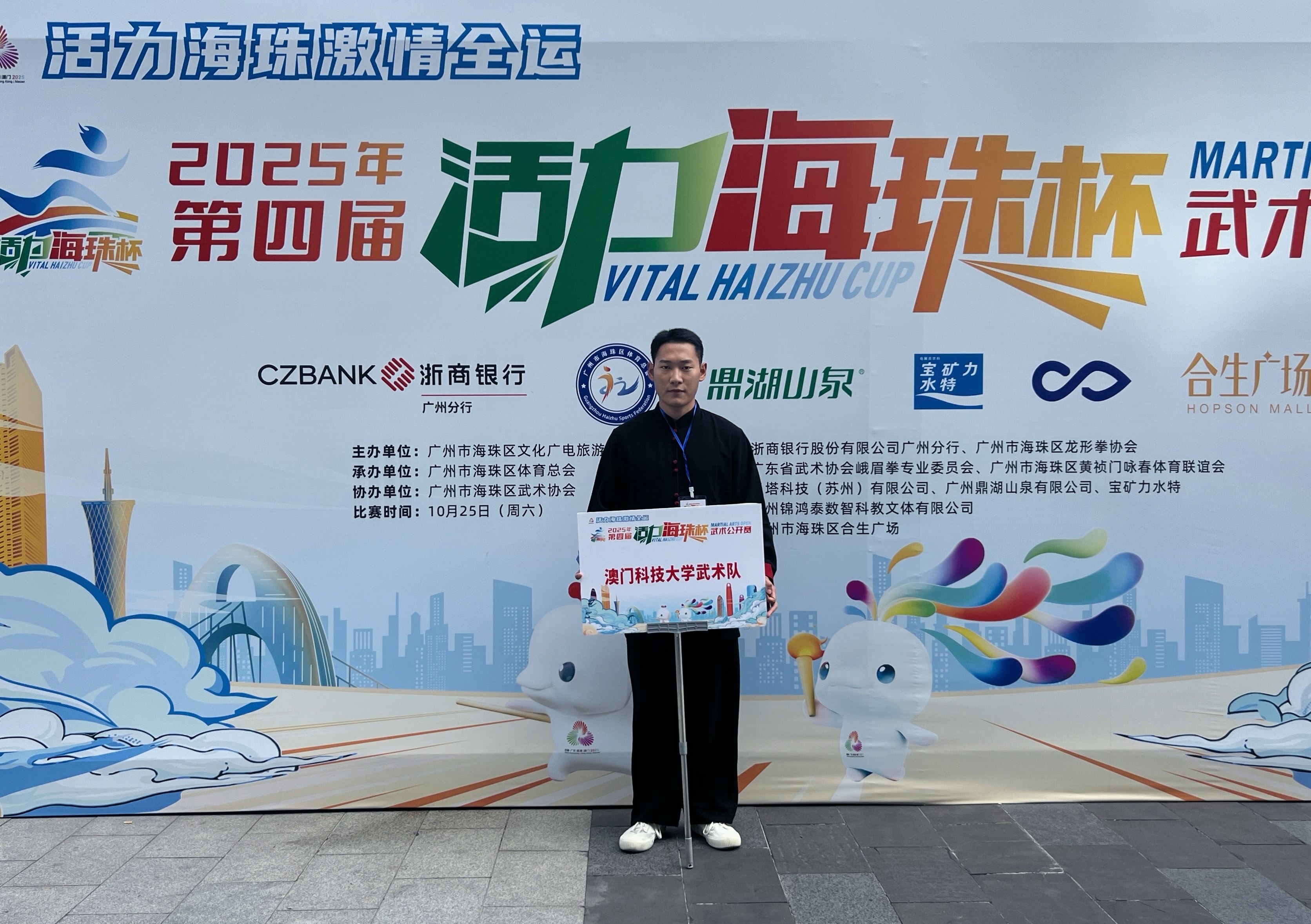 第四屆活力海珠杯武術公開賽2025年10月25日於廣州舉行,此次賽事由廣州市海珠區文化廣電旅遊體育局主辦,廣州市海珠區體育總會承辦。賽事吸引近400名選手同台競技,競逐殊榮。澳門科技大學武術隊嚴一明代表大學參賽,奪得男子C組北派傳統拳項目一等獎(金牌),並被評為優秀運動員。