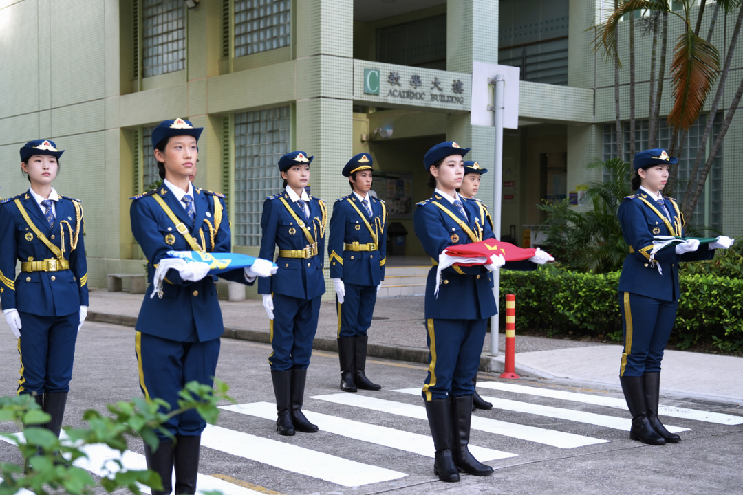早 8 時整,升旗儀式正式開始。英姿颯爽的國旗儀仗隊邁著鏗鏘有力的步伐,護送國旗、區旗、校旗走向旗台。隨著雄壯的《義勇軍進行曲》奏響,全場肅立,三位旗手將三面旗幟拋向天空並敬禮致敬。旗幟在晨曦映照下冉冉升起,全體師生行注目禮,愛國之情在每個人心中湧動。