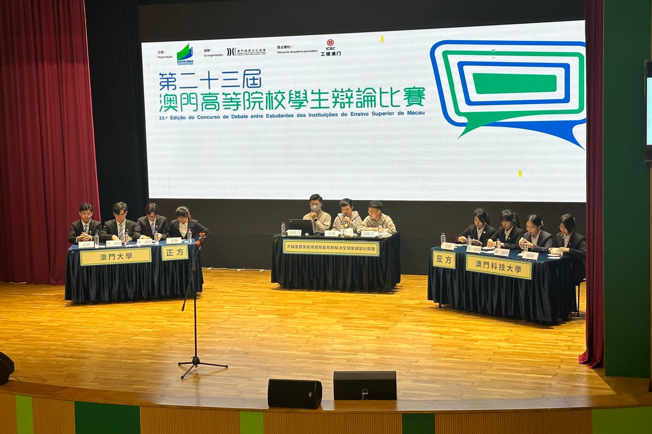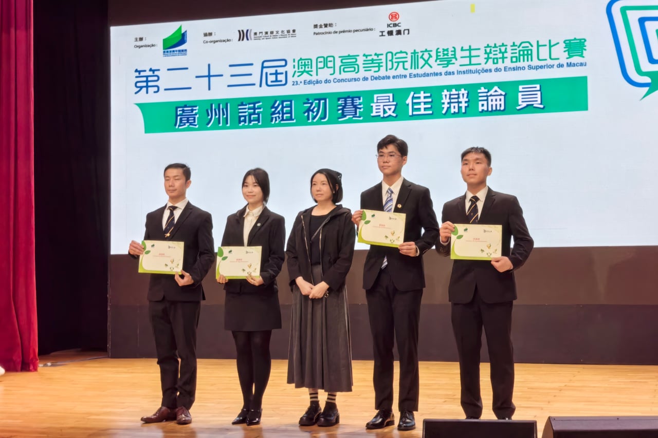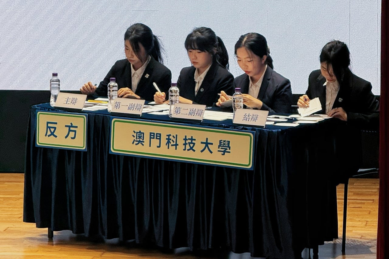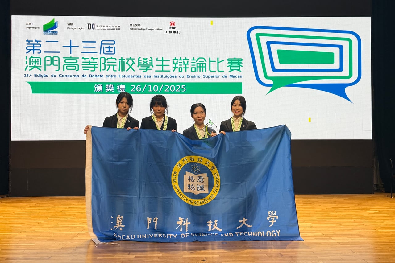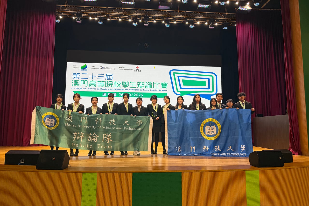 由澳門教育及青年發展局主辦的第二十三屆澳門高等院校學生辯論比賽於 2025 年 10 月 4 日至 26 日在澳門中葡職業技術學校禮堂順利舉行。本次比賽旨在通過辯論的形式,提升學生對社會議題的關注度,鍛煉思辨能力與團隊合作精神,並促進各校之間的學術交流。澳門科技大學辯論隊廣東話組榮獲本屆比賽亞軍,徐予同學獲得初賽最佳辯論員稱號。