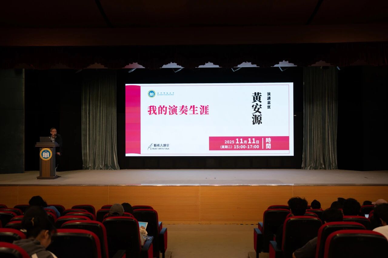 由澳門科技大學文體發展辦公室主辦,澳門科技大學基金會、澳門科技大學校友會聯合總會、炫之韻藝術團支持的「藝術大講堂」系列講座之「我的演奏生涯」於 2025 年 11 月 11 日下午在澳門科技大學 D 座禮堂成功舉辦。本場講座邀請到胡琴工作者,前香港中樂團團長、助理指揮,香港中文大學及香港演藝學院導師黃安源主講。