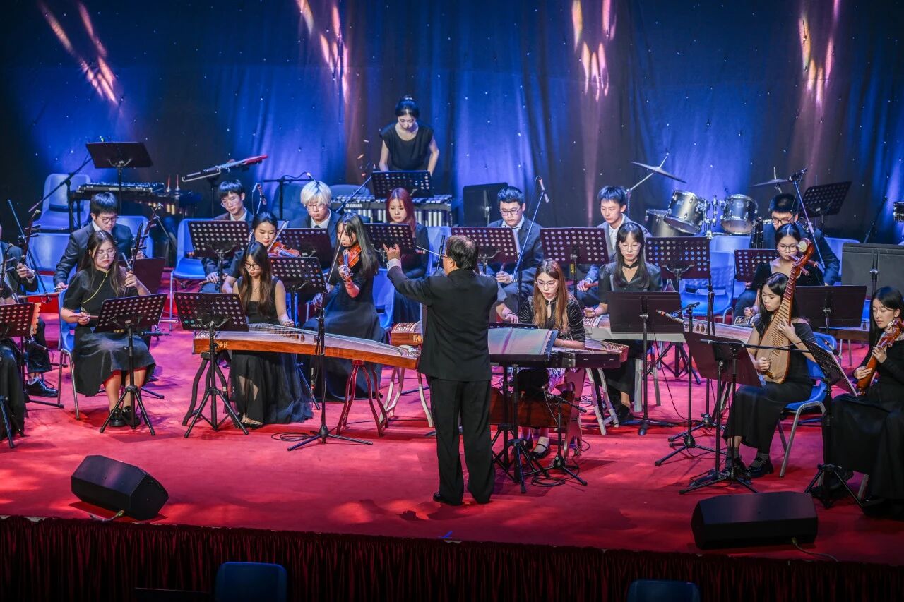 音樂會以中樂篇章拉開序幕。《枉凝眉》與《葬花吟》帶觀眾夢回紅樓,寶黛之間刻骨銘心的東方情愫在宮商角徵羽間流轉,奏響一曲生命易逝的悲歌。古箏團演繹的《漁舟唱晚》與《權禦天下》風格迥異,前者描繪田園湖光山色,後者再現風起雲湧的三國時代。