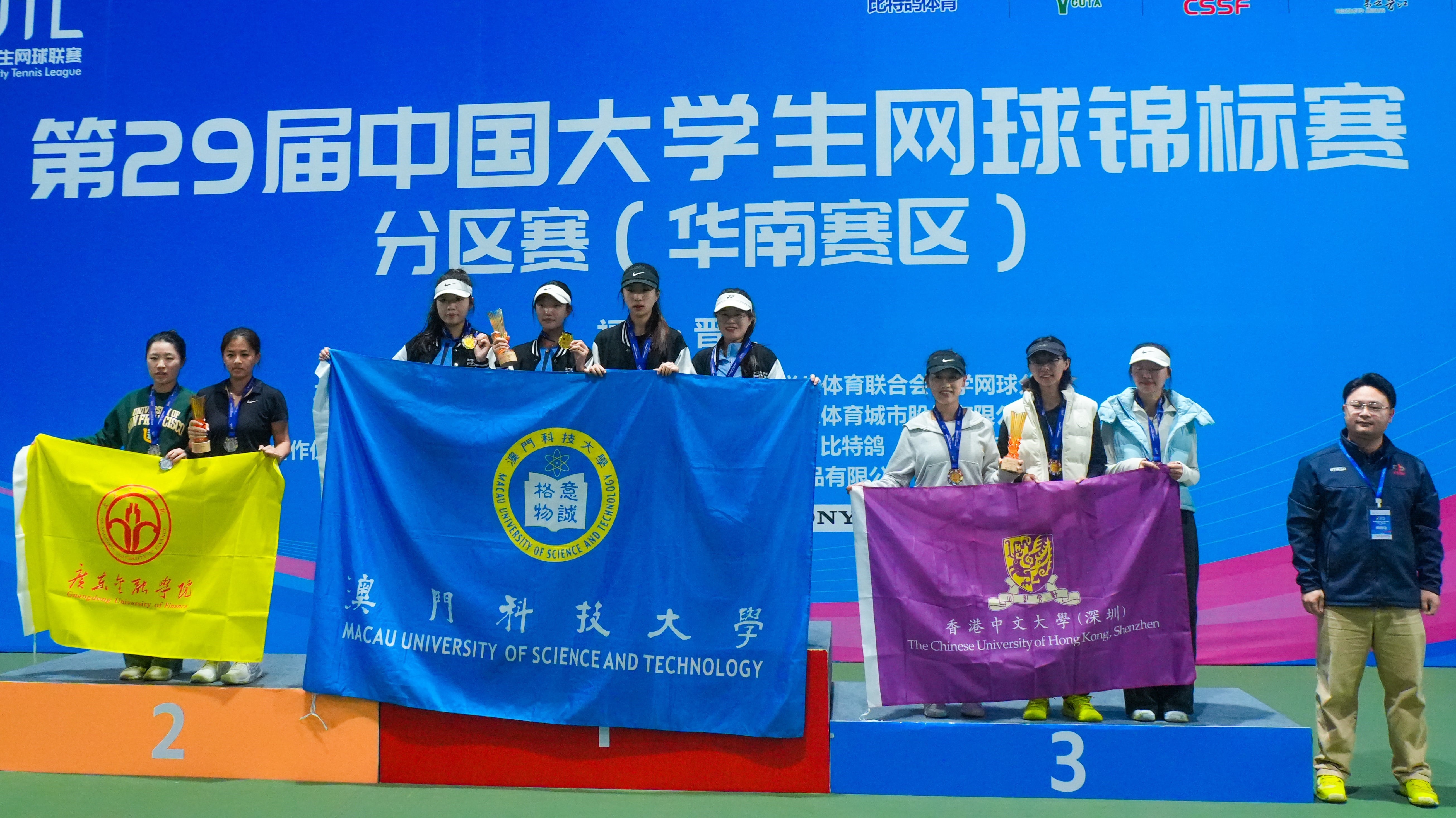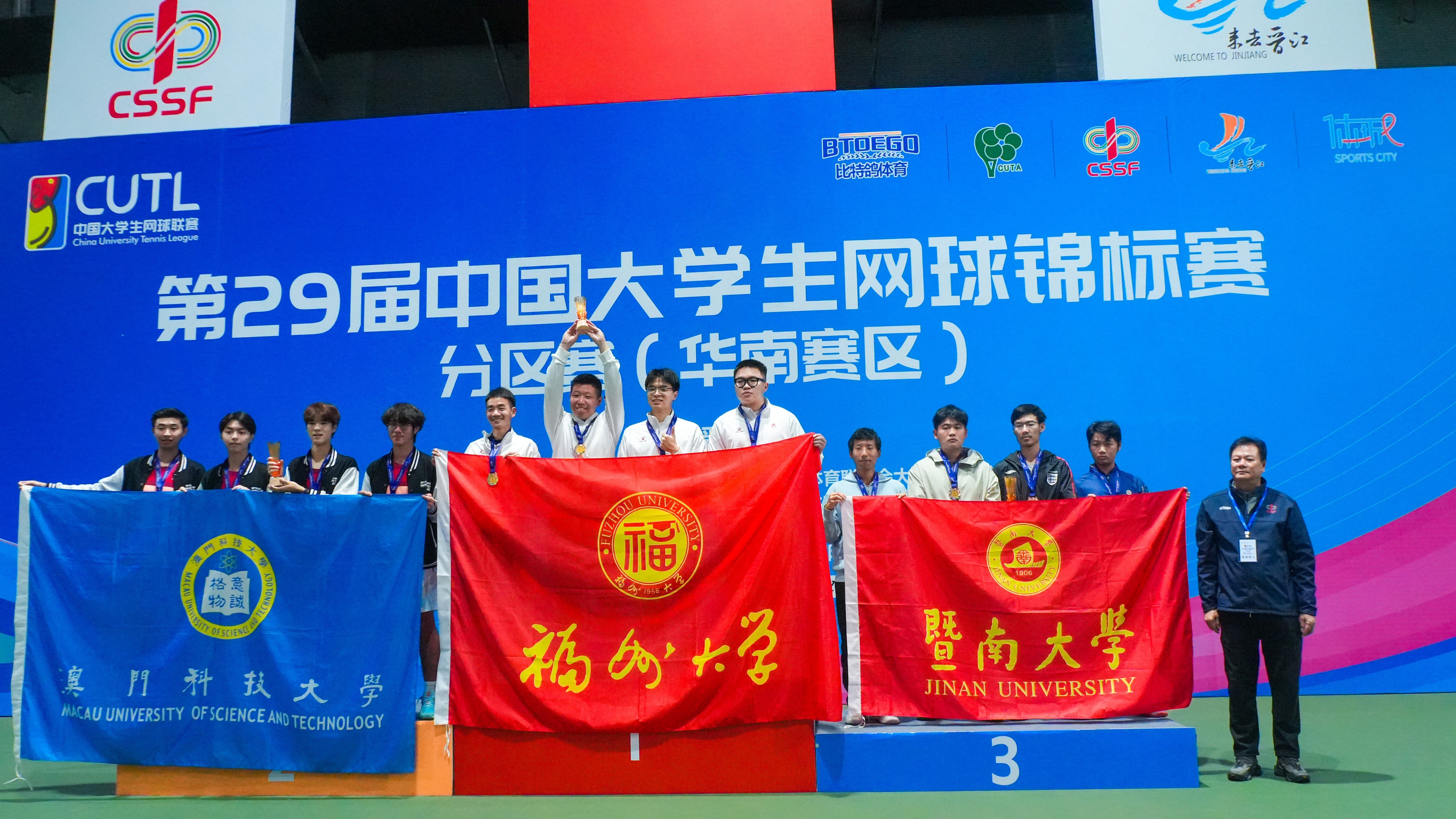 第 29 屆中國大學生網球錦標賽分區賽(華南賽區)於 2025 年 12 月 3 至 6 日在晉江市全民健身中心順利舉辦。本屆賽事由中國學生體育聯合會主辦,中國學生體育聯合會大學網球分會執行,晉江巿人民政府支持,湖州巿吳區文化和廣電旅遊體育局、晉江國家體育城巿股份有限公司承辦。本次比賽彙聚了來自福建、廣東、海南三省及香港、澳門特區的 31 所高校代表隊,超過 300 名網球精英齊聚晉江。澳門科技大學網球隊一舉奪得甲組女子團體冠軍及甲組男子團體亞軍,成功創造女隊歷史最好成績!