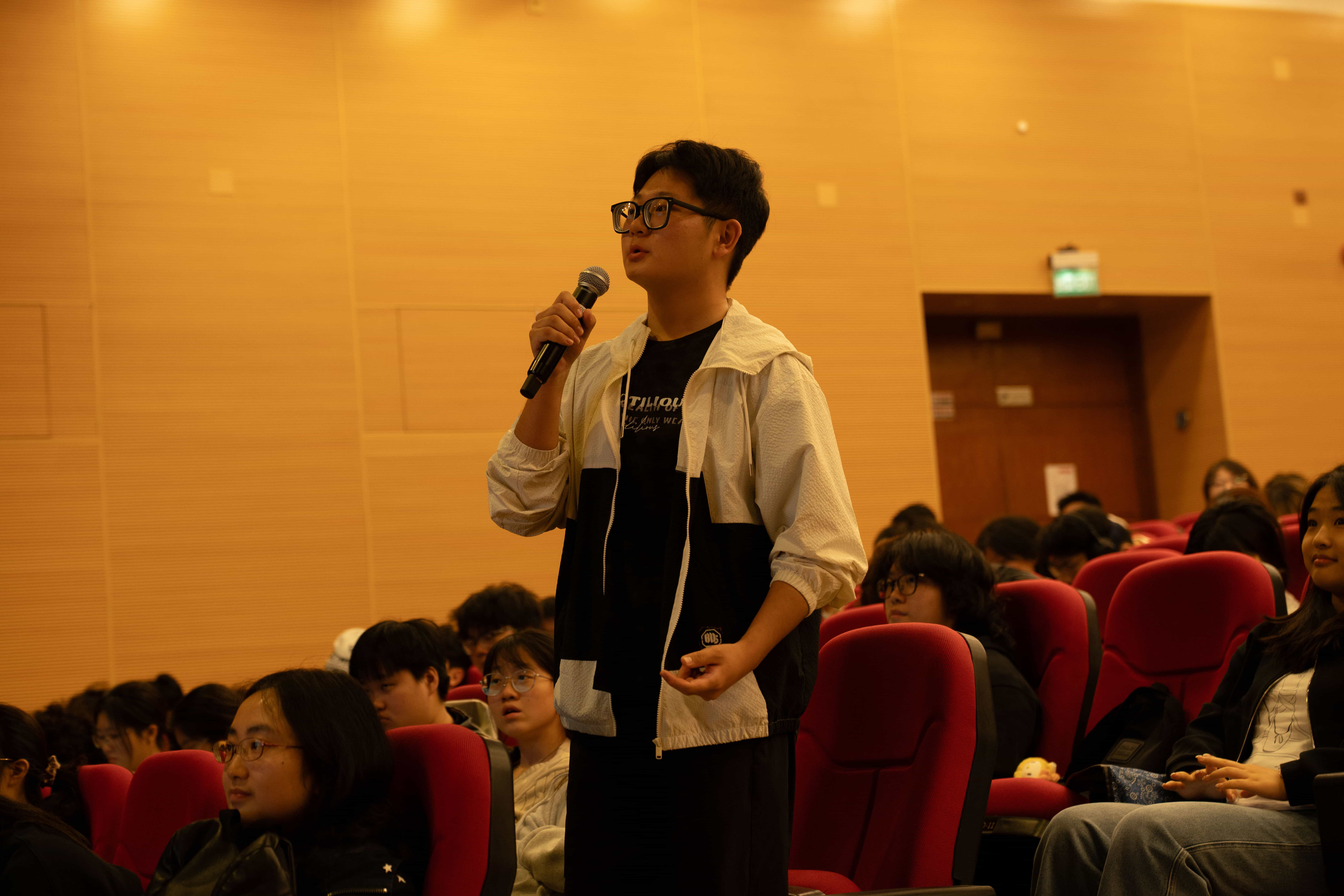 讲座后半段,潘老师回顾了广西采风经历,与同学们共同欣赏了彝族特色音乐《跳月火种》,并阐释其创作理念 —— 通过音乐促进文化交融,延续音乐传承的价值。最后,他寄语在场同学:创作未必取悦众人,但求以作品遇见知音,以分享凝聚同道。