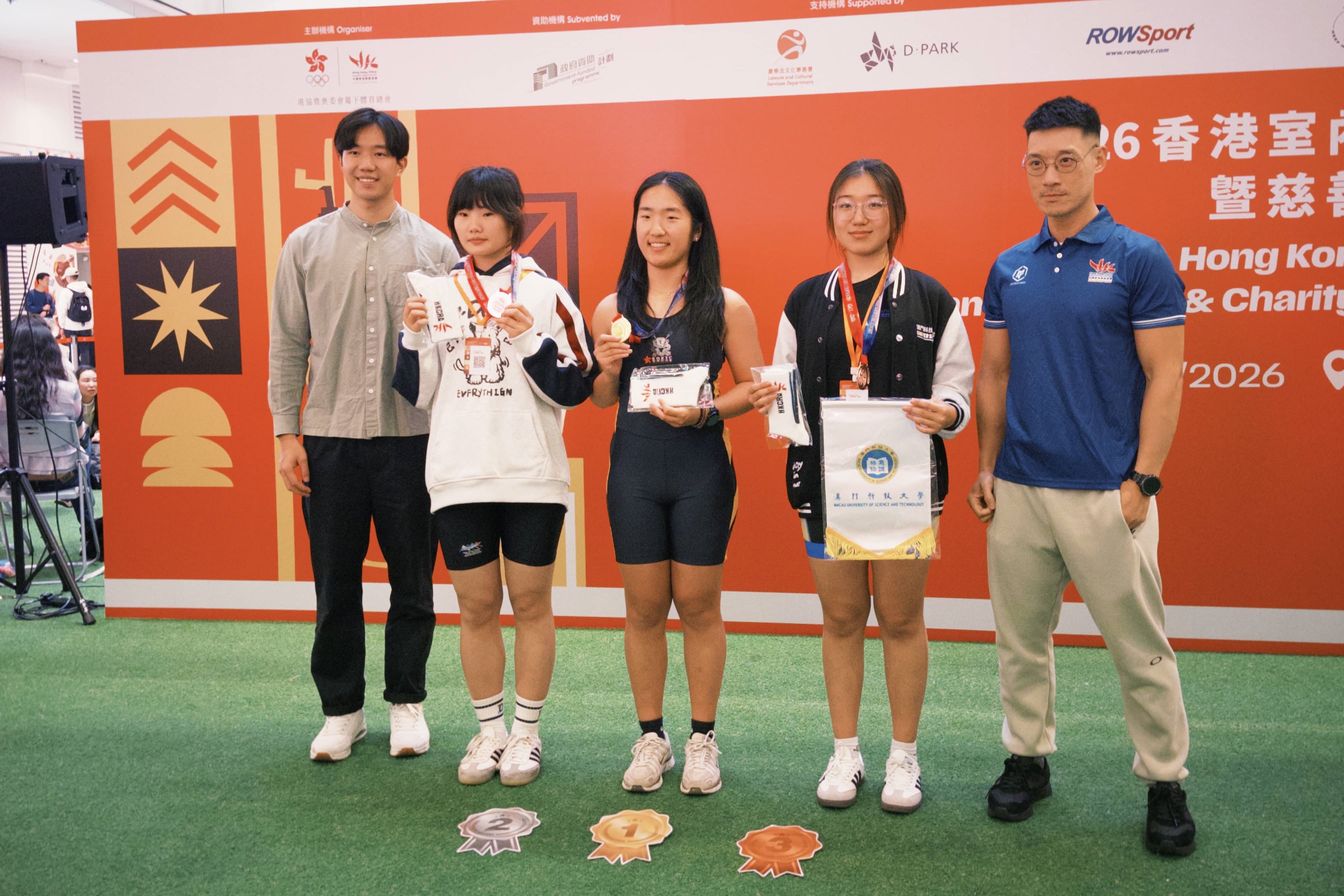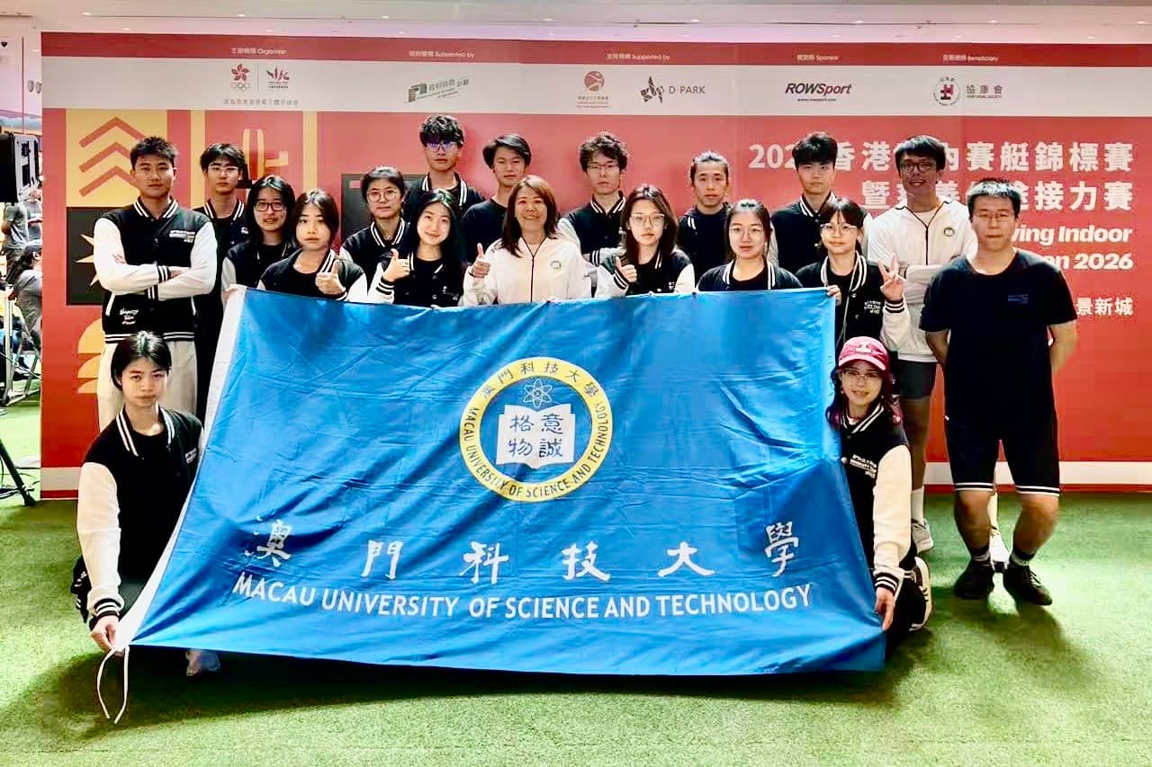 由中國香港賽艇協會主辦,中華人民共和國香港特別行政區政府文化體育及旅遊局藝術及體育發展基金資助的 2026 香港室內賽艇錦標賽暨慈善長途接力賽於 3 月 14 至 15 日在香港新界圓滿落幕。本次賽事彙集了香港大學、香港中文大學、香港理工大學、香港科技大學等眾多實力隊伍。澳科大賽艇隊派出 17 名隊員,參與了個人項目、團體接力及慈善長途接力賽三大類共八個項目的角逐。歷經兩日的全力拼搏,隊伍斬獲慈善長途接力賽公開組冠軍,並在多個個人項目中獲得優異成績。
