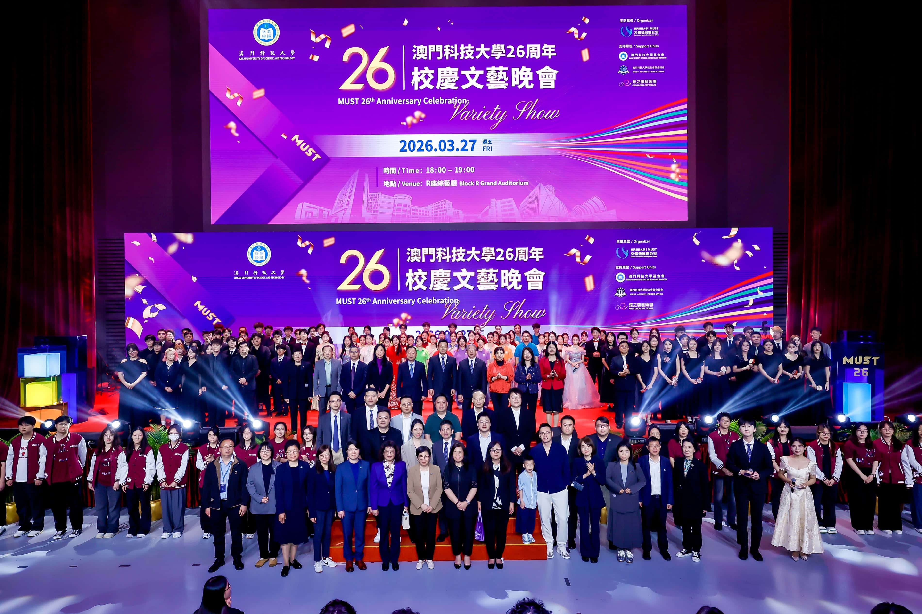 为庆祝澳门科技大学建校 26 周年,凝聚师生校友情谊,展现校园文化艺术成果,由澳门科技大学文体发展办公室主办,澳门科技大学基金会、澳门科技大学校友会联合总会及炫之韵艺术团支持的澳门科技大学 26 周年校庆文艺晚会于 2026 年 3 月 27 日晚在 R 座综艺厅隆重举行。