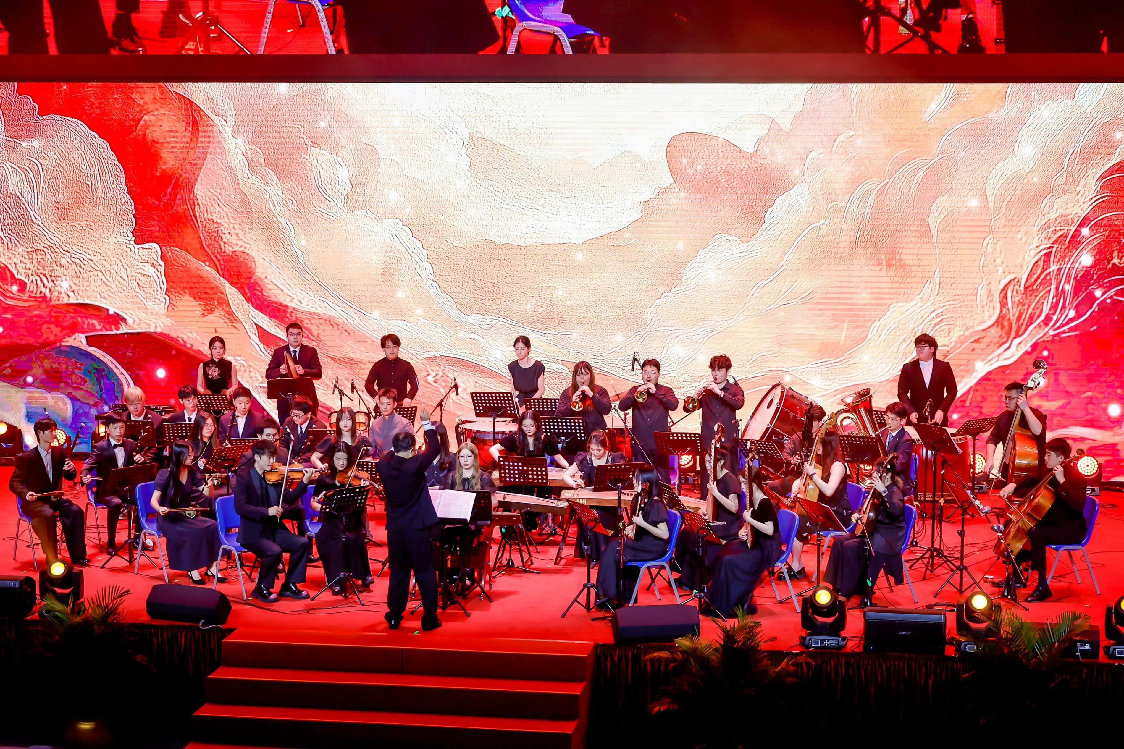 随后,中乐团奏响《醒狮龙舟》,以铿锵有力、层次分明的旋律描绘醒狮腾跃、龙舟竞渡的热烈场景,生动展现中华传统文化的热烈气韵与昂扬精神。接续登场的管弦乐作品《第二圆舞曲》旋律优雅流转,在细腻而富层次的演绎中,为观众铺展出一幅浪漫深情的音乐画面。