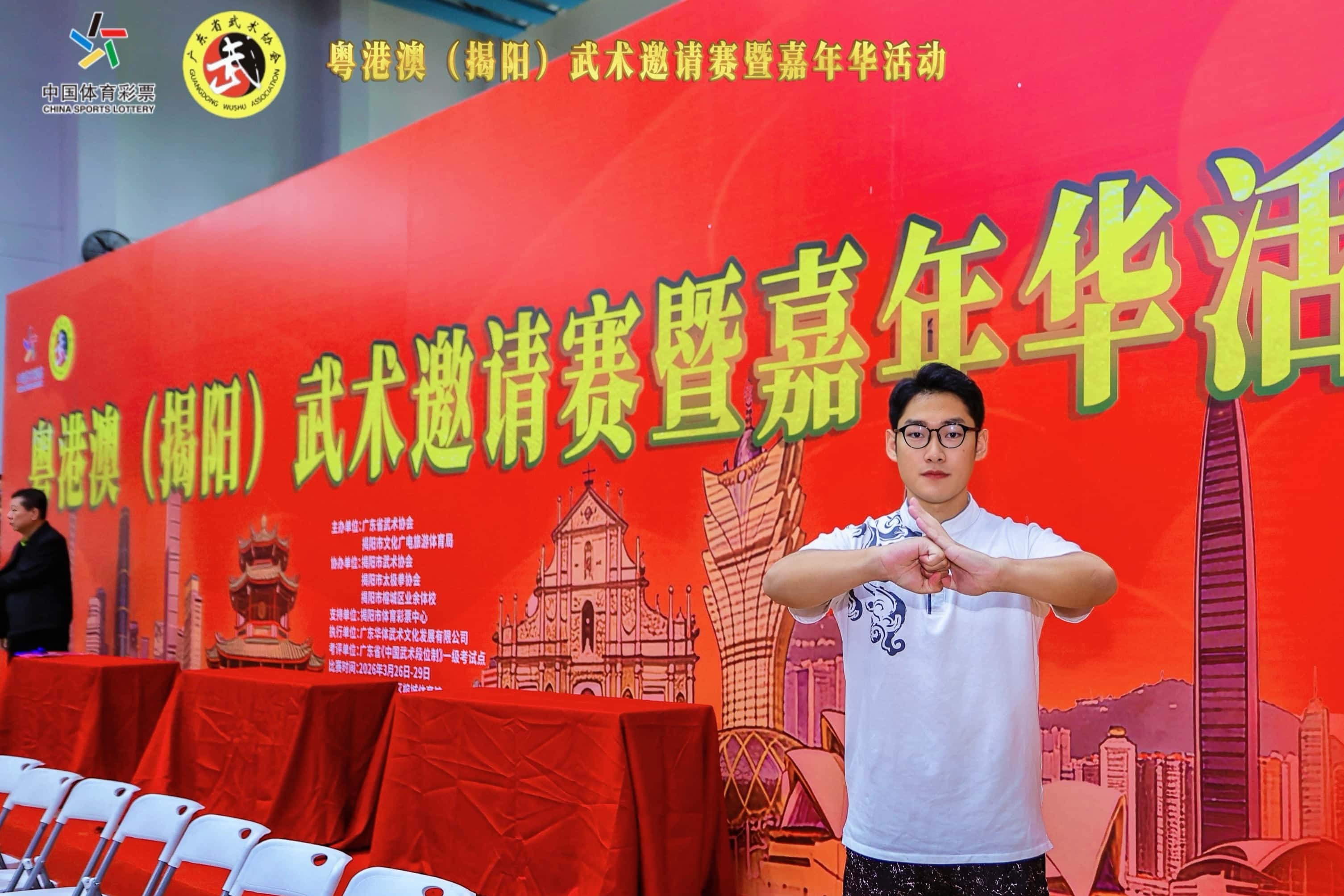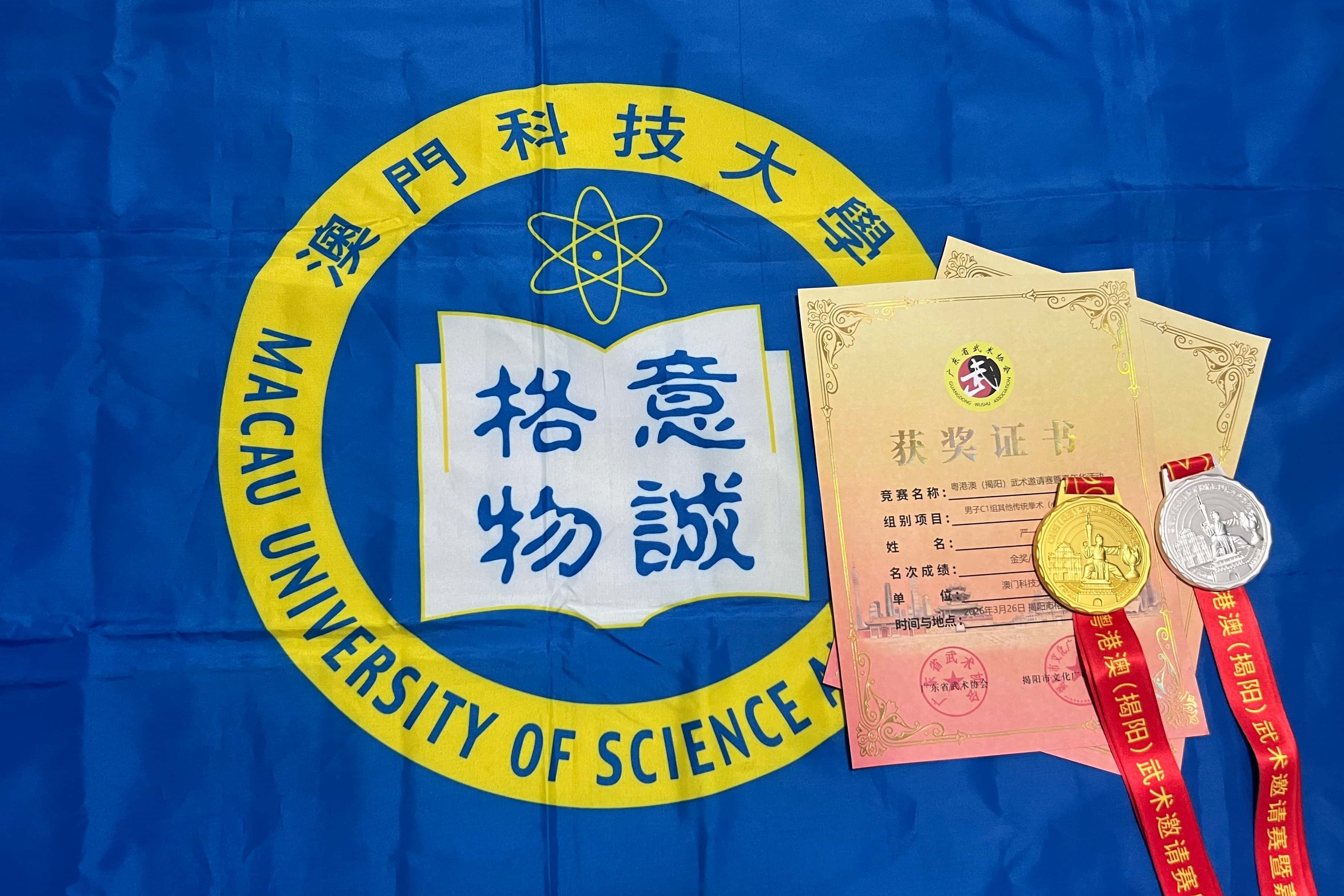 由揭阳市文化广电旅游体育局、广东省武术协会联合主办的粤港澳(揭阳)武术邀请赛暨嘉年华活动, 于 3 月 27 日至 3 月 29 日在揭阳榕城体育馆举行,本次赛事吸引了来自澳门、香港、广州等大湾区城市,汕潮揭三市以及梅州五华、湖北沙市等地的 94 支队伍、1511 名参与者同场竞技,规模盛大,现场气氛热烈。澳门科技大学武术队严一明获男子青年组其他传统拳术(心意六合拳)金牌及男子青年组其他传统拳术(四把捶)银奖。