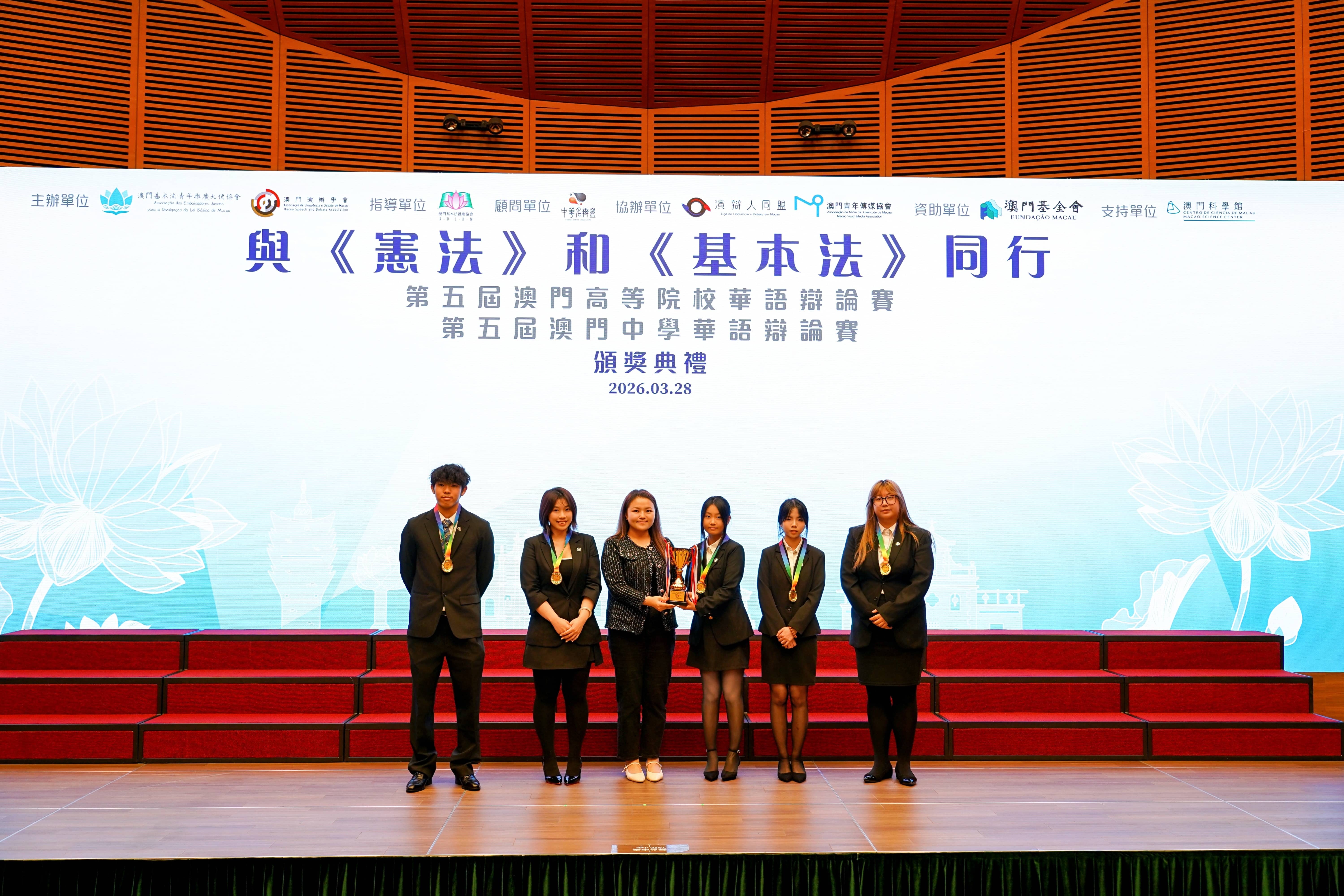 来自澳门多所高等院校的辩论精英齐聚一堂,在激烈交锋中碰撞思想火花,充分展现新时代青年的思辨风采。澳门科技大学辩论队广东话组凭借沉稳的临场发挥与缜密周详的论证,一路过关斩将,最终荣获亚军。