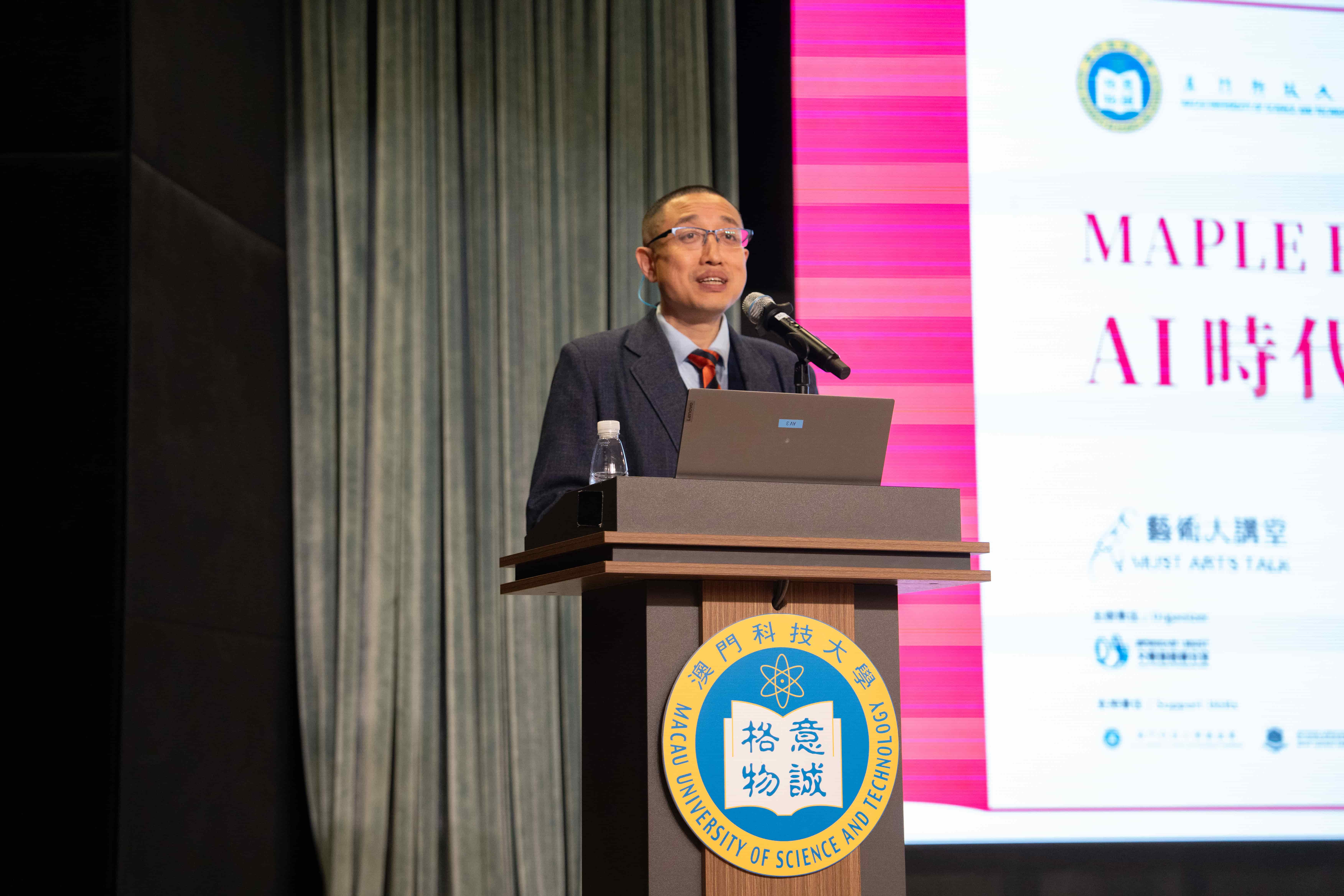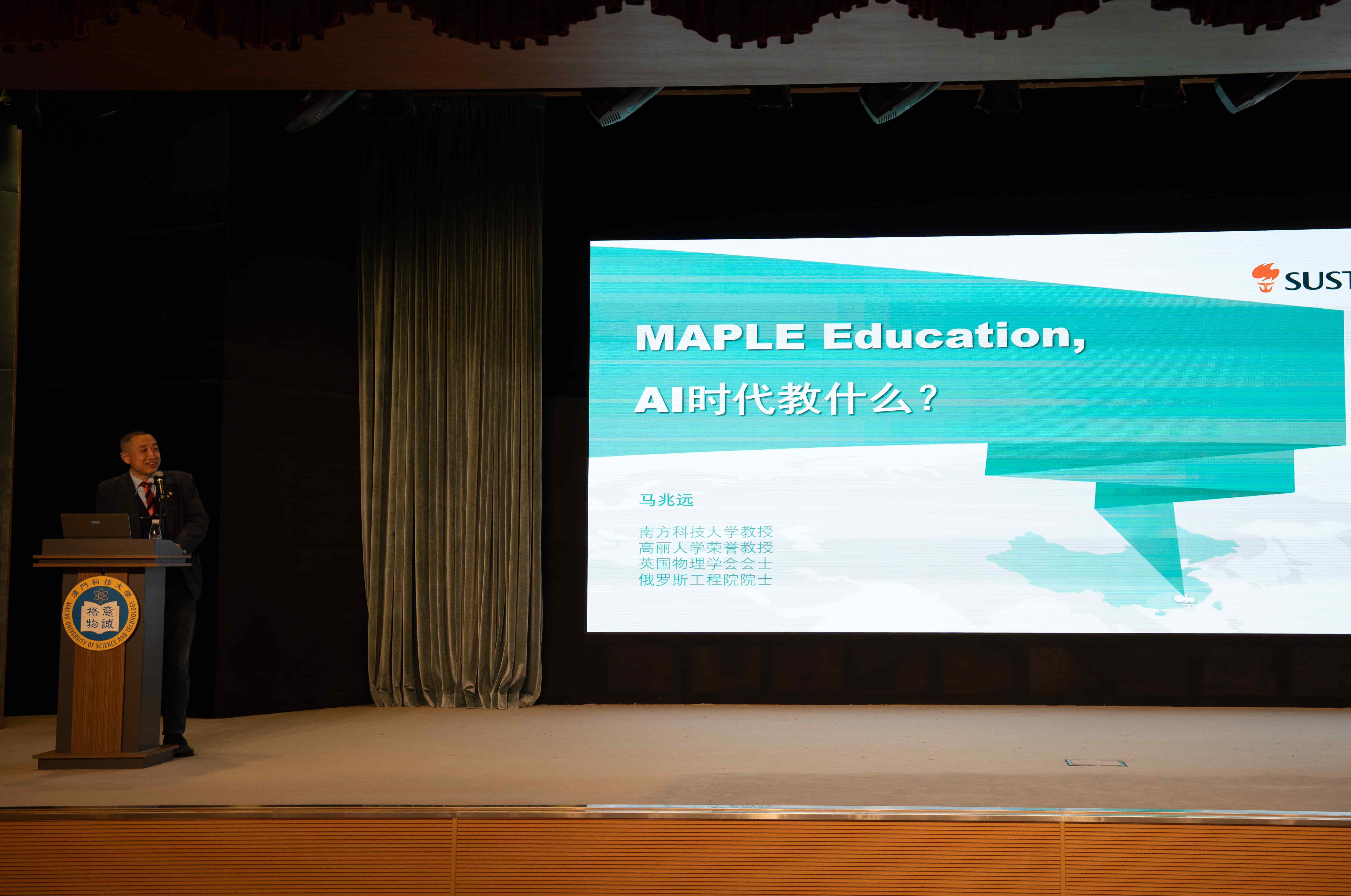 由澳门科技大学文体发展办公室主办的「艺术大讲堂」系列讲座之「MAPLE Education:AI 时代教什么?」,于 2026 年 3 月 31 日下午在澳门科技大学 D 座礼堂成功举办。本场讲座邀请到现任南方科技大学工学院教授、英国物理学会会士、俄罗斯工程院外籍院士、高丽大学荣誉教授,曾任清华大学深圳国际研究生院院长助理、清华大学未来实验室首席研究员、数位化先进制造研究中心主任、英国谢菲尔德大学智能制造专业教授、中国科学院「百人计划」研究员 —— 马兆远主讲。